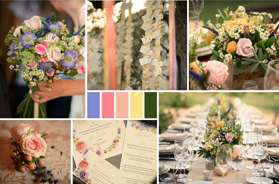 The chirp of cicades, the rustle of the wind in the leaves and children’s laughter. This is how Rachel and Nathan’s big day began, a colourful wine estate wedding in Florence.